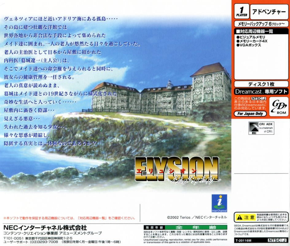 | 2002.07.25 | 일본어 | ELYSION ~永遠のサンクチュアリ~ 메모 | 완전판 GD-ROM |