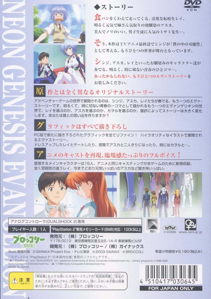 | 2006.03.02 | 일본어 | Broccoli Best Quality 新世紀エヴァンゲリオン 鋼鉄のガールフレンド 2nd | 완전판 DVD |