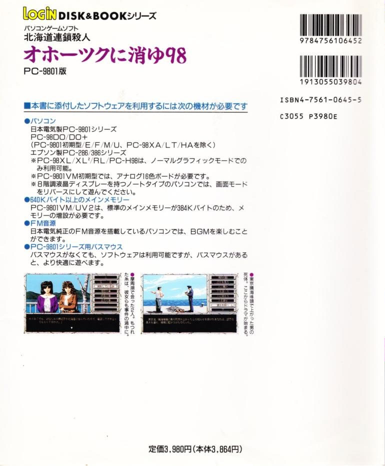 1992.09.25 일본어 LOGiN DISK&BOOKシリーズ オホーツクに消ゆ98 메모 완전판