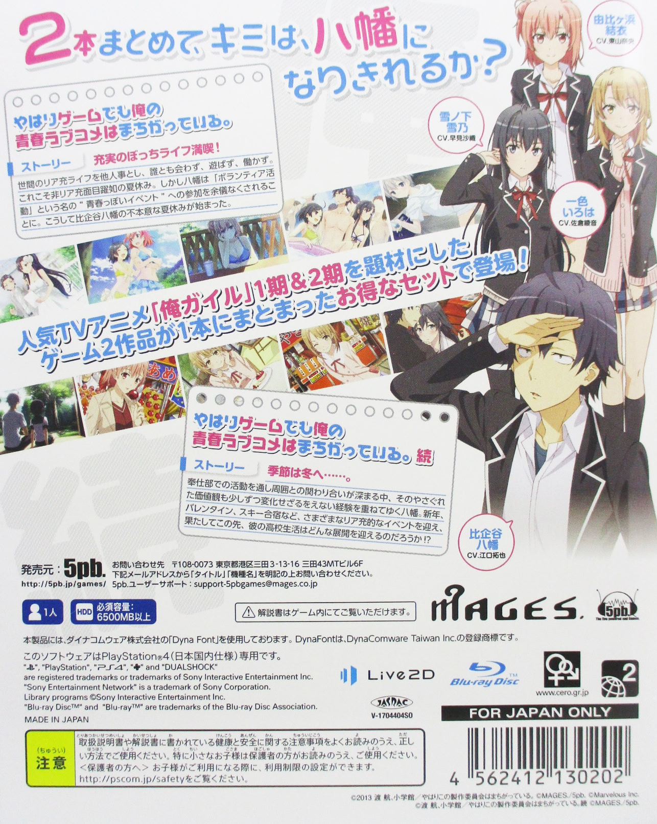 일본어 やはりゲームでも俺の青春ラブコメはまちがっている。続Yahari Game demo Ore no Seishun Love Come wa Machigatteiru. Zoku한국어 역시 내 청춘 러브코메디는 잘못됐다. 속 * - 발매일