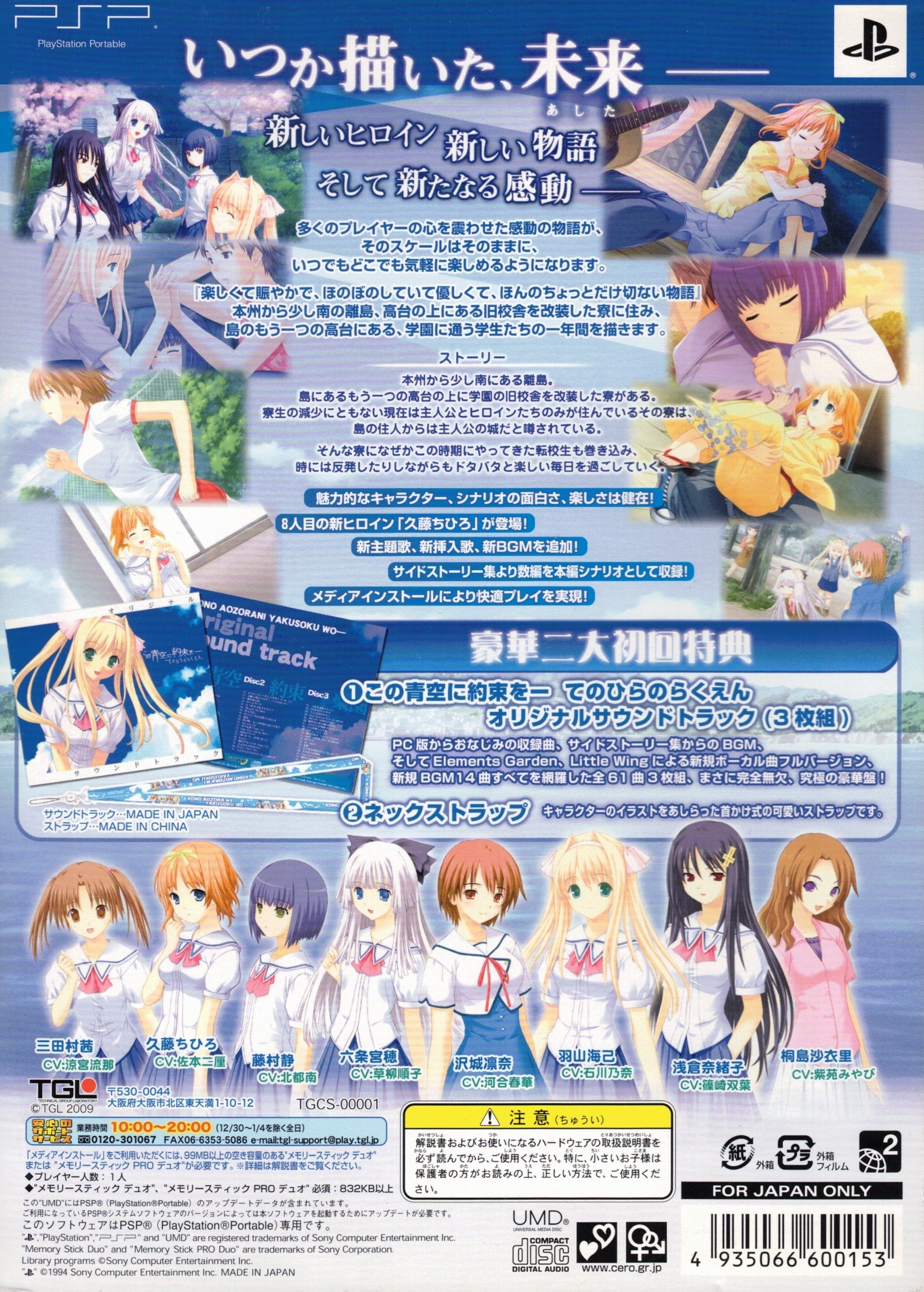 | 2009.06.25 | 일본어 | この青空に約束を― てのひらのらくえん (DXパック) 메모 | 완전판 UMD |