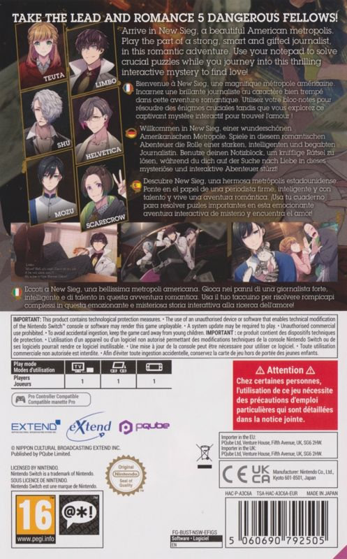 아름다운 가상의 도시, 뉴 시그(New Sieg)에 오신 것을 환영합니다. 이 로맨틱 어드벤처 게임에서 당신은 강인하고 똑똑하며 재능 있는 기자가 되어 이야기를 이끌어가게 됩니다. 주인공인 당신은 타인의 몸에 아주 짧은 시간 동안 빙의하여 과거로 돌아갈 수 있는 능력을 지녔으며, 이 능력을 활용해 정보를 수집하고 사람들을 돕습니다. 부패한 변호사가 살해당하는 장면을 목격한 주인공은 그를 구하기 위해 과거로 시간을 되돌립니다. 그렇게 타인의 몸을 빌려 과거로 돌아가 림보(Limbo)에게 경고하려는 주인공의 여정이 시작됩니다. 그를 어떻게 구할지는 당신의 손에 달려 있습니다!