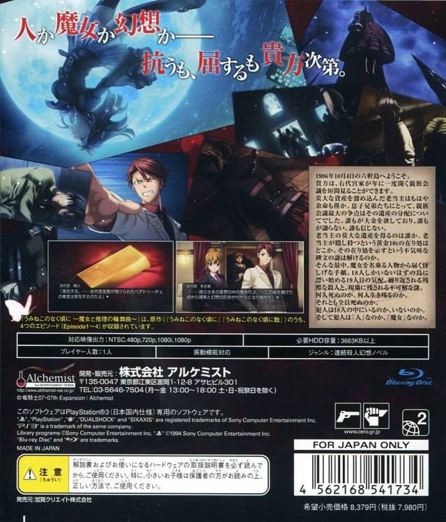 | 2011.12.15 | 일본어 | うみねこのなく頃に散 ~真実と幻想の夜想曲~ うみねこセット | 완전판 블루레이 x2 |