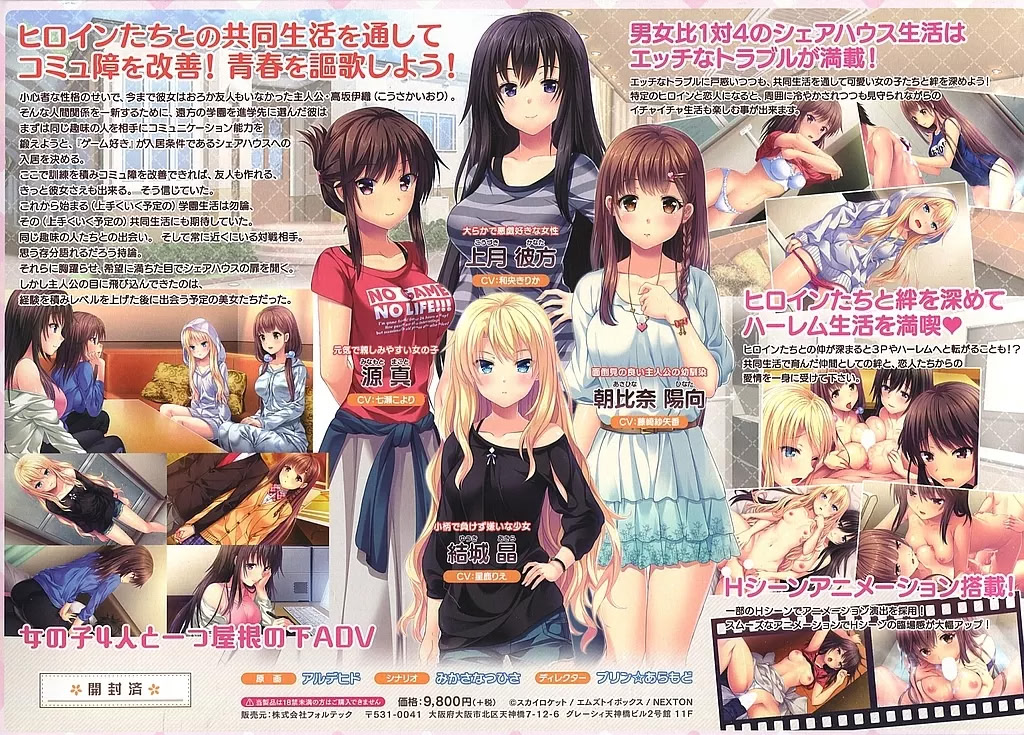 우선 이오리는 같은 취미를 가진 사람들과 어울리면 의사소통 능력을 키우기 쉬울 것이라 판단해, 게이머 전용 셰어 하우스에 입주하기로 했다. 여기서 충분한 경험을 쌓는다면, 분명 이오리에게도 여자친구가 생길 터였다.