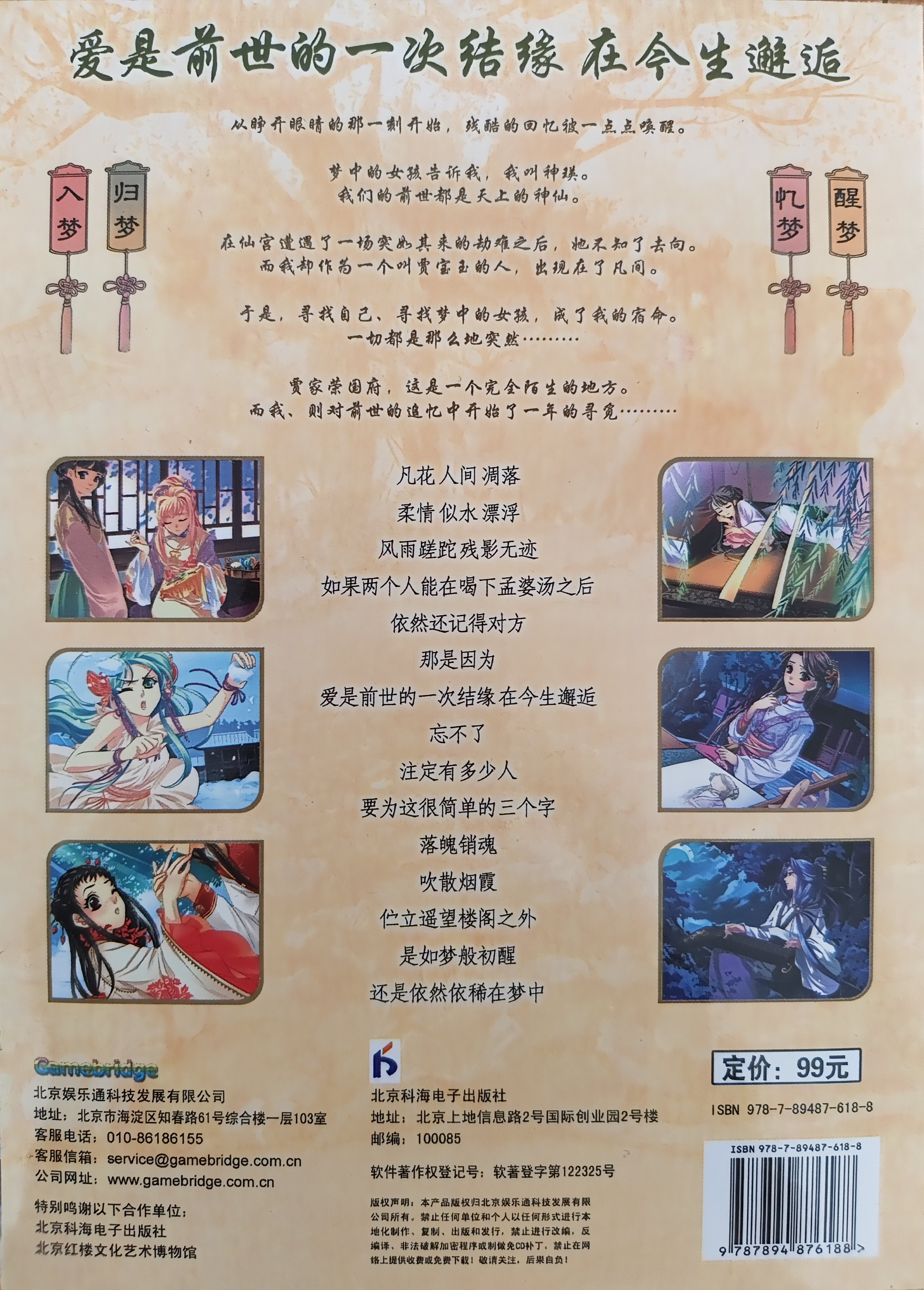 红楼梦 커버 & 패키지 5 커버 & 패키지 4 전체 커버 패키지 앞면 중국어(간체) 红楼梦 2009.01.10 Windows 뒷면 중국어(간체) 红楼梦 2009.01.10 Windows 내용물 중국어(간체) 红楼梦 2009.01.10 Windows 내용물 중국어(간체) 红楼梦 2009.01.10 Windows VNDB - 원어중국어(간체) 별칭紅樓夢, Dream of the Red Chamber 발매일2009.01.10 개발Yule Tong 외부 링크 VNDB 태그 남성 주인공2.0 과거 중국2.0 문학 원작2.0 성적 콘텐츠 없음2.0 외국인 히로인2.0 +1 외국인 주인공2.0 정보 릴리즈 (1) 관련 작품 (1) 리뷰 베이징의 한 기업이 제작한 청나라 소설 '홍루몽'의 비주얼 노벨 각색판으로, 명문가 후계자 자보옥과 집안 여성들 간의 관계를 다루고 있다. 전체 플랫폼 Windows 발매일 언어 제목 유형 연령 속성 스토어 EGS 2009.01.10 중국어(간체) 红楼梦 완전판DVD All 음성 열기 1 공식 사이트 관계 제목 공식 대체 버전 再續紅樓夢 공식