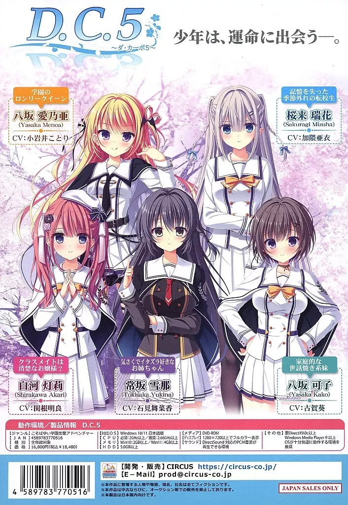 | 2023.12.21 | 일본어 | D.C.5 ~ダ・カーポ5~ダウンロード版 | 완전판 인터넷 |