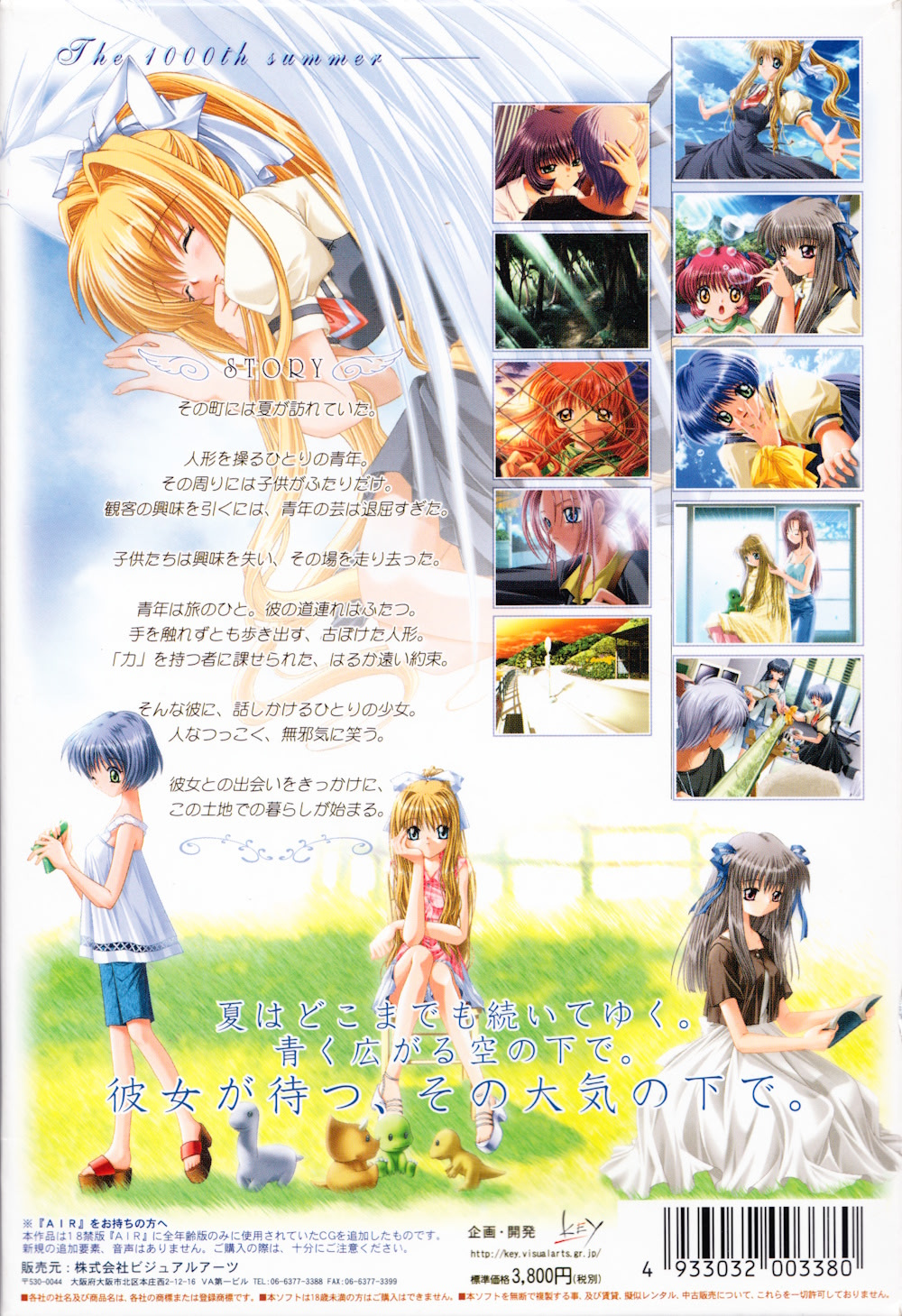 쿠니사키 유키토는 세상을 떠난 어머니로부터 인형 하나와 '하늘에 있는 소녀'를 찾아 구해달라는 마지막 유언을 남겼습니다. 그것이 그의 운명이라는 말과 함께요. 어머니의 말씀이 무슨 뜻인지 반신반의하면서도, 유키토는 어머니가 말한 신화 속 소녀를 찾아 일본 전역을 떠돌아다니고 있었습니다. 그의 마지막 목적지는 막 여름이 찾아온 조용하고 한적한 마을. 그곳에서 만난 미스즈라는 소녀와의 인연이 운명의 수레바퀴를 움직이기 시작하는데....