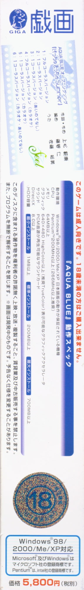 | 2002.12.20 | 일본어 | AQUA BLUE 初回版 메모 | 완전판 CD |