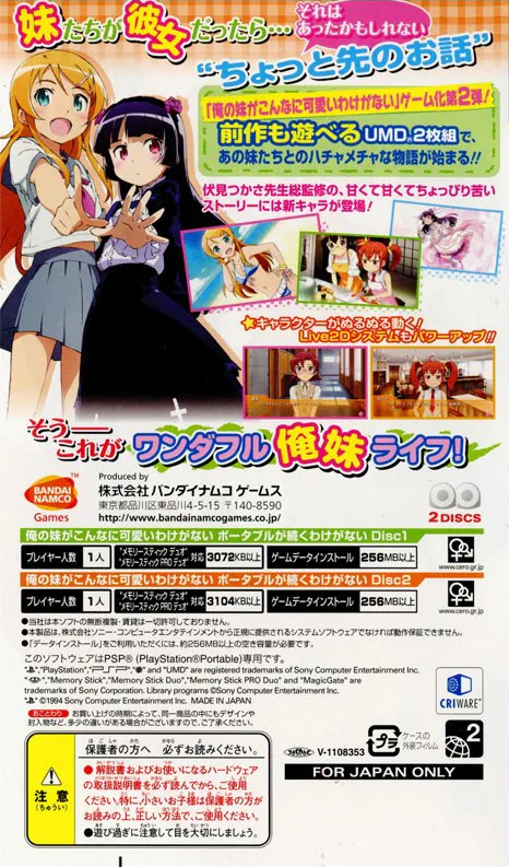 일본어 俺の妹がこんなに可愛いわけがない ポータブルOre no Imouto ga Konna ni Kawaii Wake ga Nai Portable한국어 내 여동생이 이렇게 귀여울 리가 없어 포터블 * - 발매일