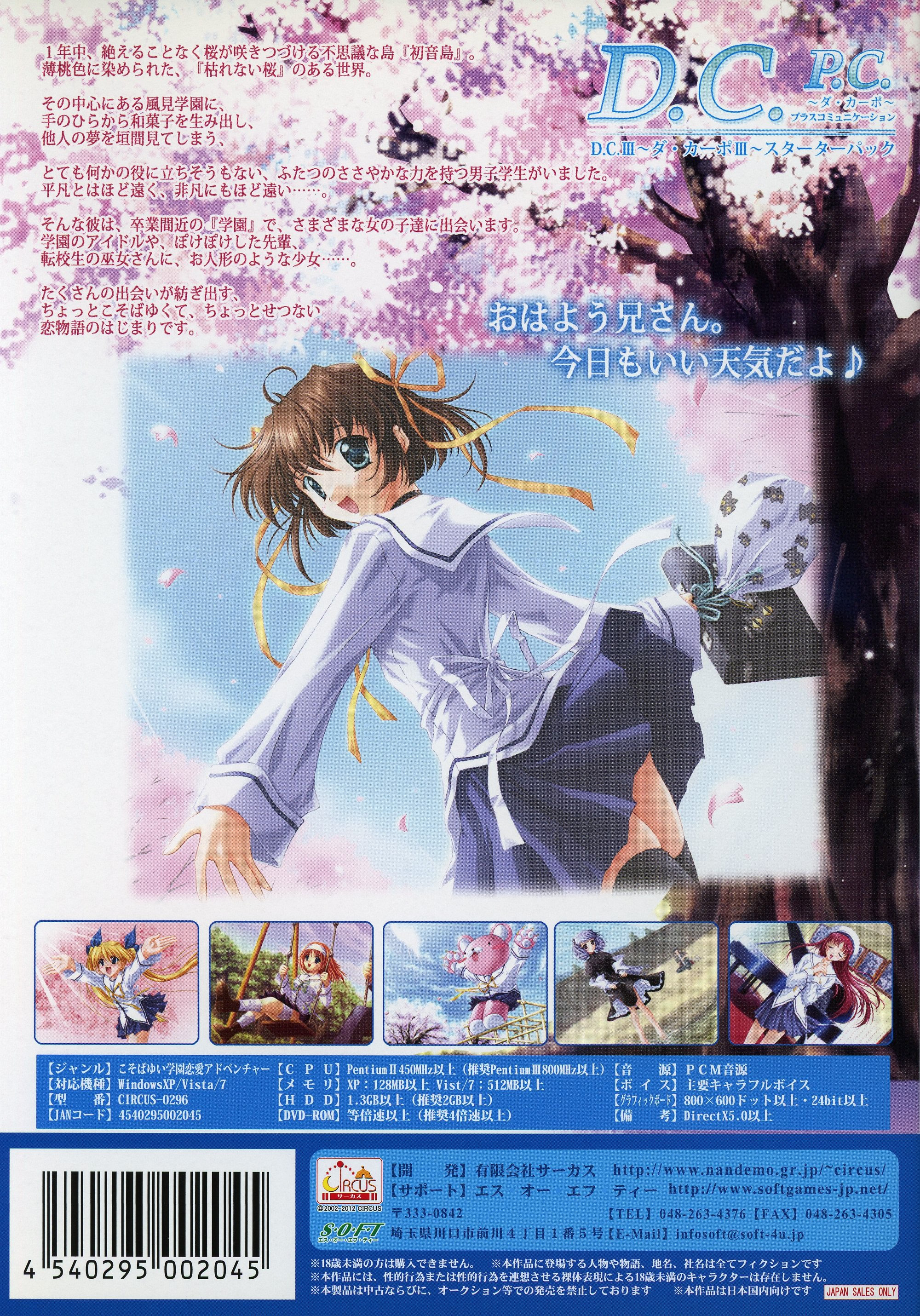 | 2012.03.14 | 일본어 | D.C.P.C.~ダ・カーポ~プラスコミュニケーション D.C.IIIスターターパック 메모 | 체험판 DVD x2 |