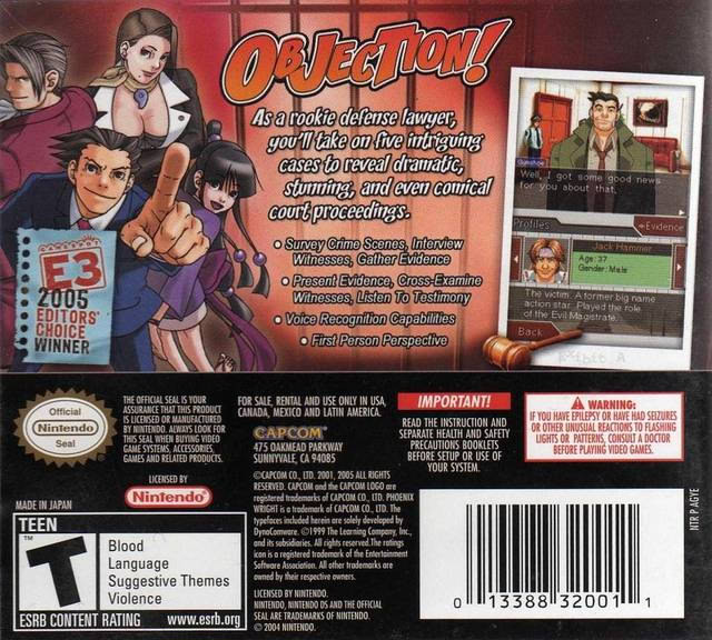 | 2005.10.11 | 영어 | Phoenix Wright: Ace Attorney - NA Edition | 완전판 카트리지 |