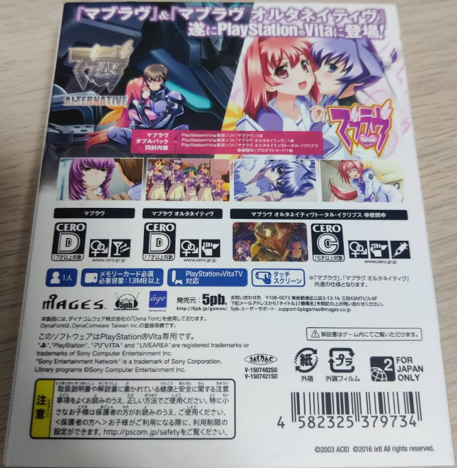 | 2016.01.21 | 일본어 | マブラヴダブルパック | 완전판 디스크 / 카트리지 x2 |