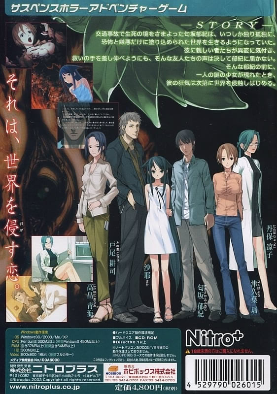 삶의 의욕을 잃어버린 후미노리는 병원에 입원해 있던 어느 날 밤, 자살을 고민하게 됩니다. 하지만 그때 하얀 드레스를 입은 소녀 사야(Saya)가 그의 앞에 나타납니다. 끔찍한 주변 환경과는 달리, 그녀는 지극히 정상적이고 아름답기까지 합니다. 후미노리는 곧 사야와 사랑에 빠지게 되고, 그녀는 그의 존재 이유가 됩니다.
