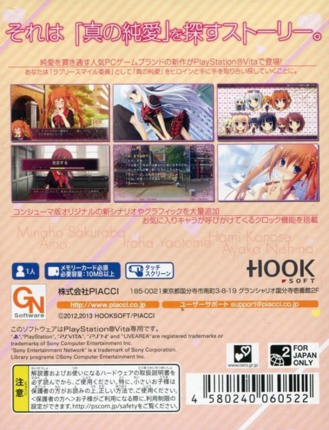 여름은 사랑의 계절입니다. 아마노토가와 학원(Academy Amanotogawa)에서는 ‘불순한’ 관계가 만연했고, 이를 바로잡고 ‘순수한’ 사랑을 장려하기 위해 “러블리 스마일 위원회(Lovely Smile Committee)”가 발족되었습니다. 하지만 순수한 사랑이란 무엇일까요? 방과 후에 손을 잡는 것은 ‘순수’한 것일까요? 직접 만든 도시락을 먹여주거나, 무릎베개를 해주거나, 함께 목욕하는 것은 어떨까요? 제니치(Zenichi)는 위원회의 유일한 멤버로 선발되어 진정한 순수한 사랑을 찾기 위한 여정을 떠납니다. 부끄러워할 시간은 없습니다. 학교의 미래가 당신의 손에 달려 있으니까요.
